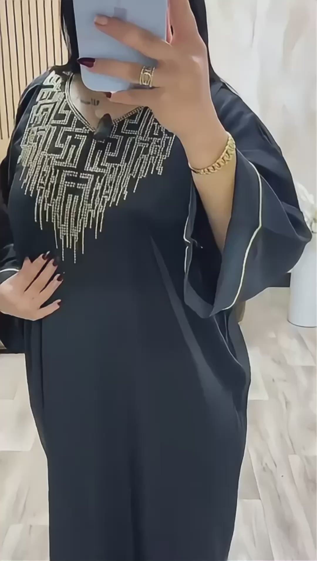 "الثوب جا زوين بزاف ونفس اللي فالتصاور بالضبط، والخياطة نقية ومريحة فاللبس. خدّيتو وجاني بزاف ديال compliments"